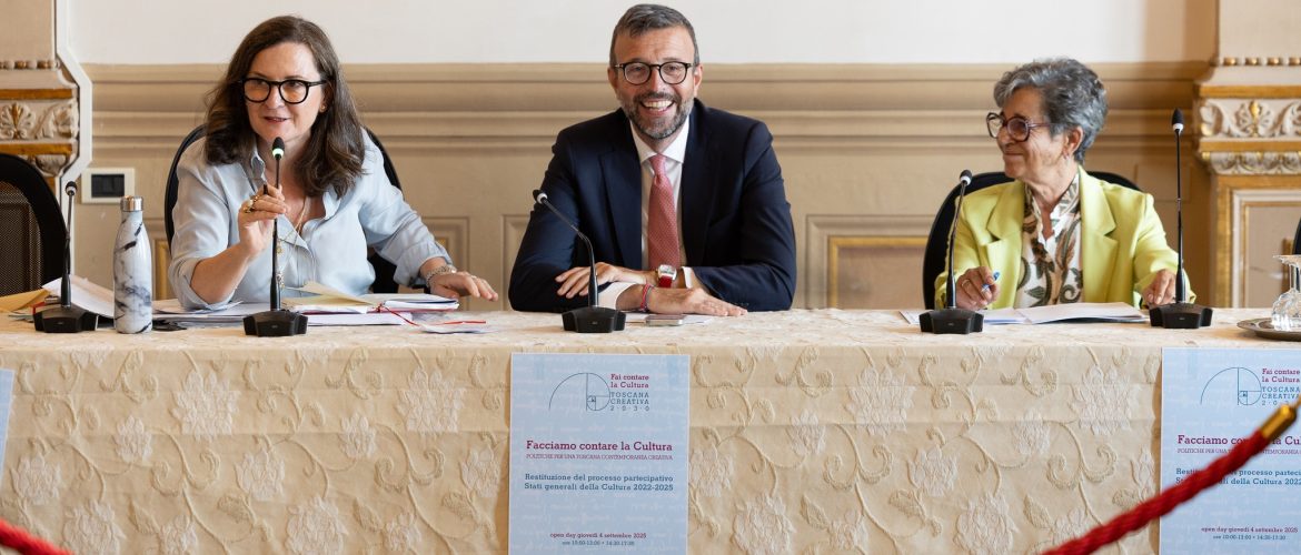 A Palazzo Bastogi, a Firenze, è in corso l’evento conclusivo degli Stati Generali della Cultura, promossi dalla V Commissione, dal Consiglio e dalla Giunta regionale, avviati nel luglio 2022. Un percorso partecipativo articolato che ha coinvolto centinaia di professionisti del settore, 24 audizioni in Commissione Cultura, 8 convegni pubblici, 7 proposte di legge di settore, un disegno di legge al Parlamento, nuovi bandi per l’editoria e progetti diffusi di promozione della lettura in tutti i territori
